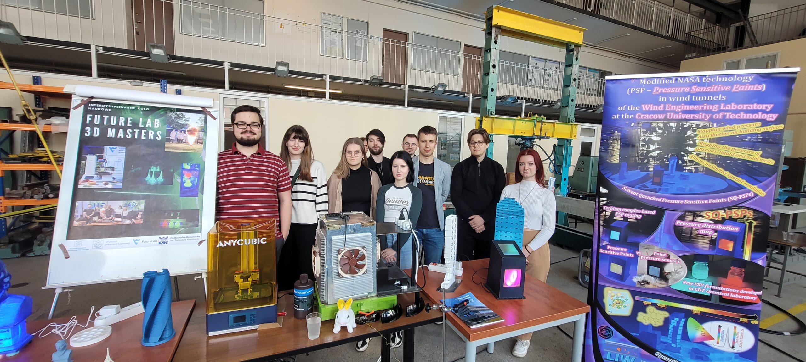 Interdyscyplinarne Koło Naukowe FutureLab 3D Masters to pierwsze wielokierunkowe koło naukowe na Politechnice Krakowskiej, które zrzesza studentów ze wszystkich wydziałów. Ta unikalna inicjatywa łączy osoby studiujące takie kierunki, jak inżynieria mechaniczna, budownictwo, technologia chemiczna czy inżynieria medyczna. Naszym celem jest tworzenie innowacyjnych rozwiązań odpowiadających na wyzwania współczesności, przy wykorzystaniu zaawansowanych technologii, takich jak druk 3D, modelowanie przestrzenne i automatyzacja.