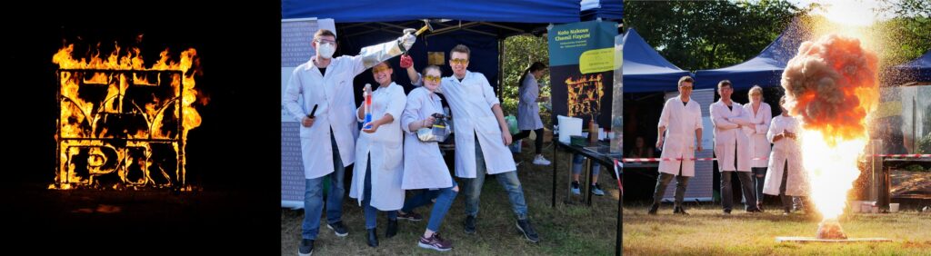 W ramach koła naukowego zajmujemy się organizacją i przeprowadzaniem pokazów naukowych. Nasze pokazy chemiczne mają na celu nie tylko edukację, ale również wzbudzenie zainteresowania chemią wśród młodszych i starszych odbiorców.